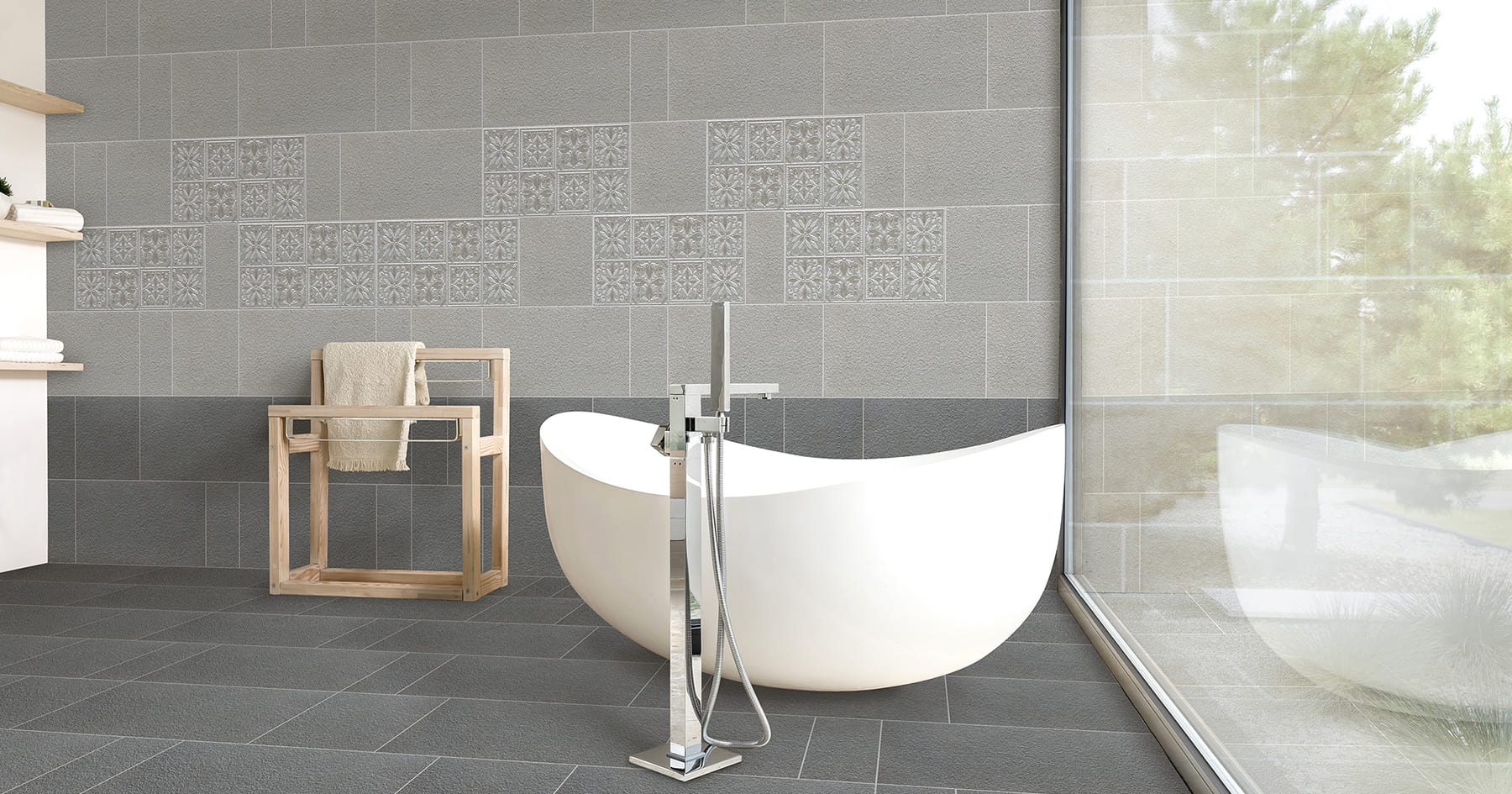 花色呈現原始石材的細緻肌理,搭配特殊釉藥與模花,更顯自然獷味。