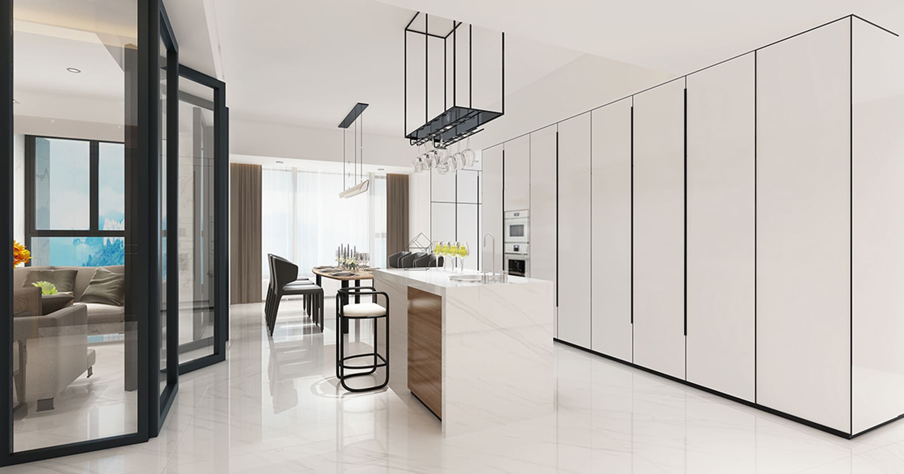 卡拉拉白(鏡面),取材自義大利卡拉拉大理石的細緻質理,以純白為基底,展現不凡的美感氣度;經典的紋路呈現自由奔放的跳躍,如同山水墨畫的意境,展演內斂、理性的居家表情。 黑雲石(絨面),靈感來自西班牙黑雲石的天然肌理,黑色系加上低調的啞光面設計,營造出高貴優雅的低調奢華感。彷若石材的視覺重量與色調帶來的沉穩,打造富麗堂皇的華美場景。